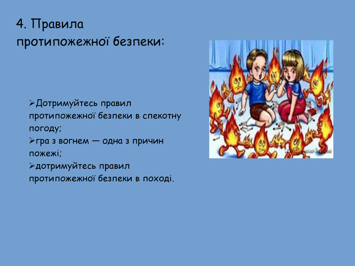 6. Не можна розпалювати вогнища і кидати в вогонь карбід, солярку, бензин тощо.