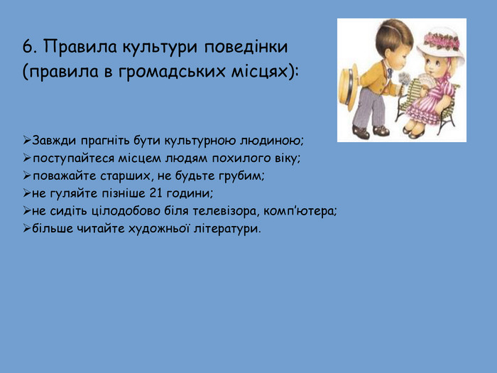 - застосовуйте всі знання й правила, отримані на уроках основ здоров’я, виховних годинах, навчальних уроках.